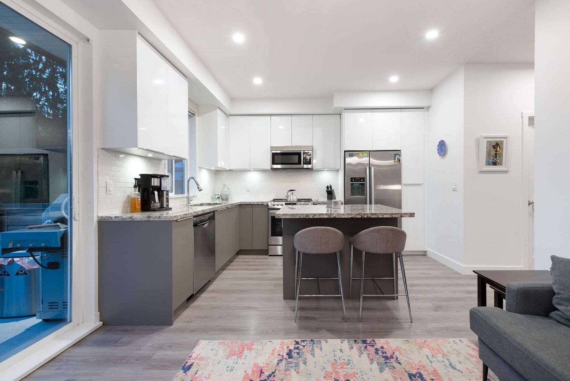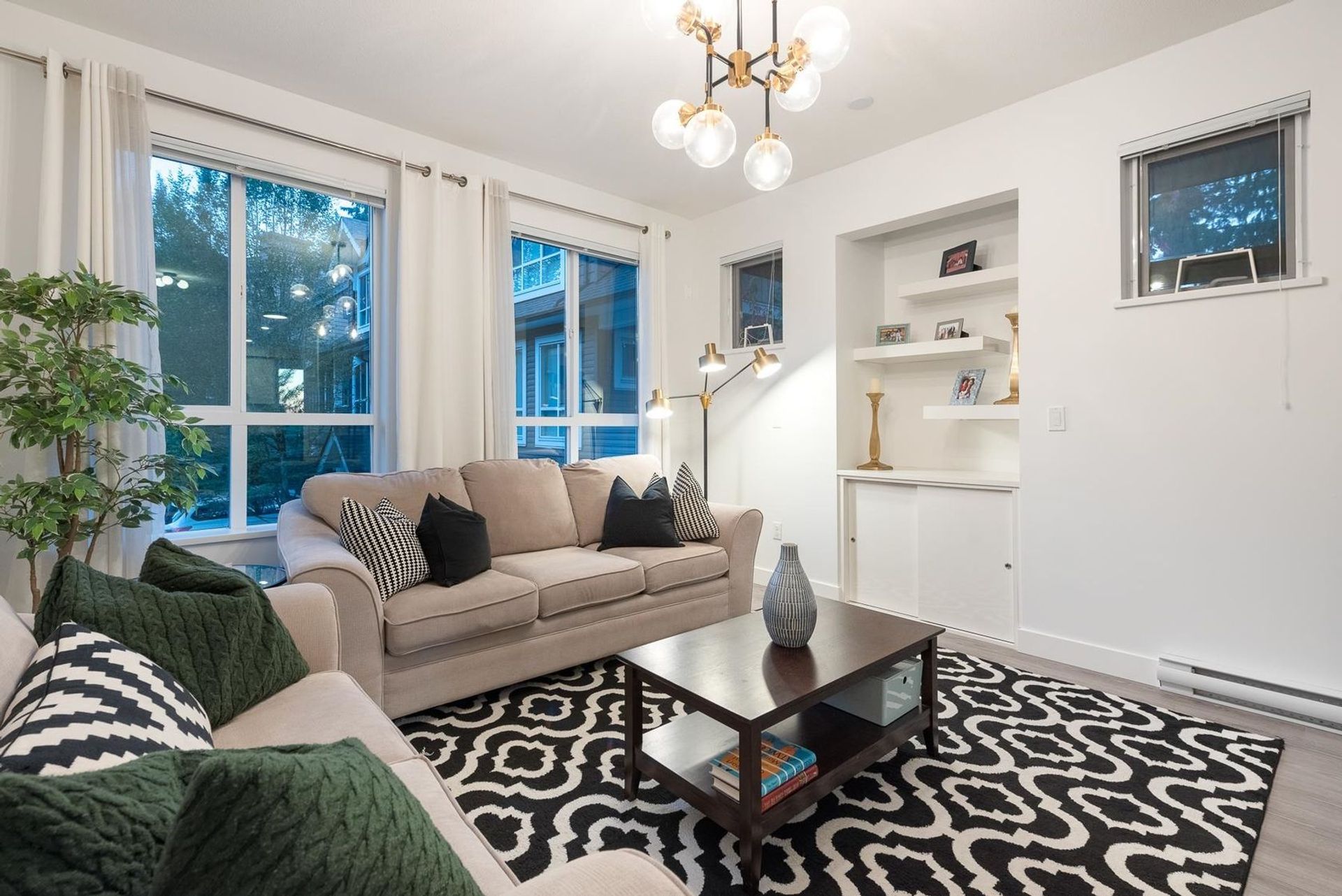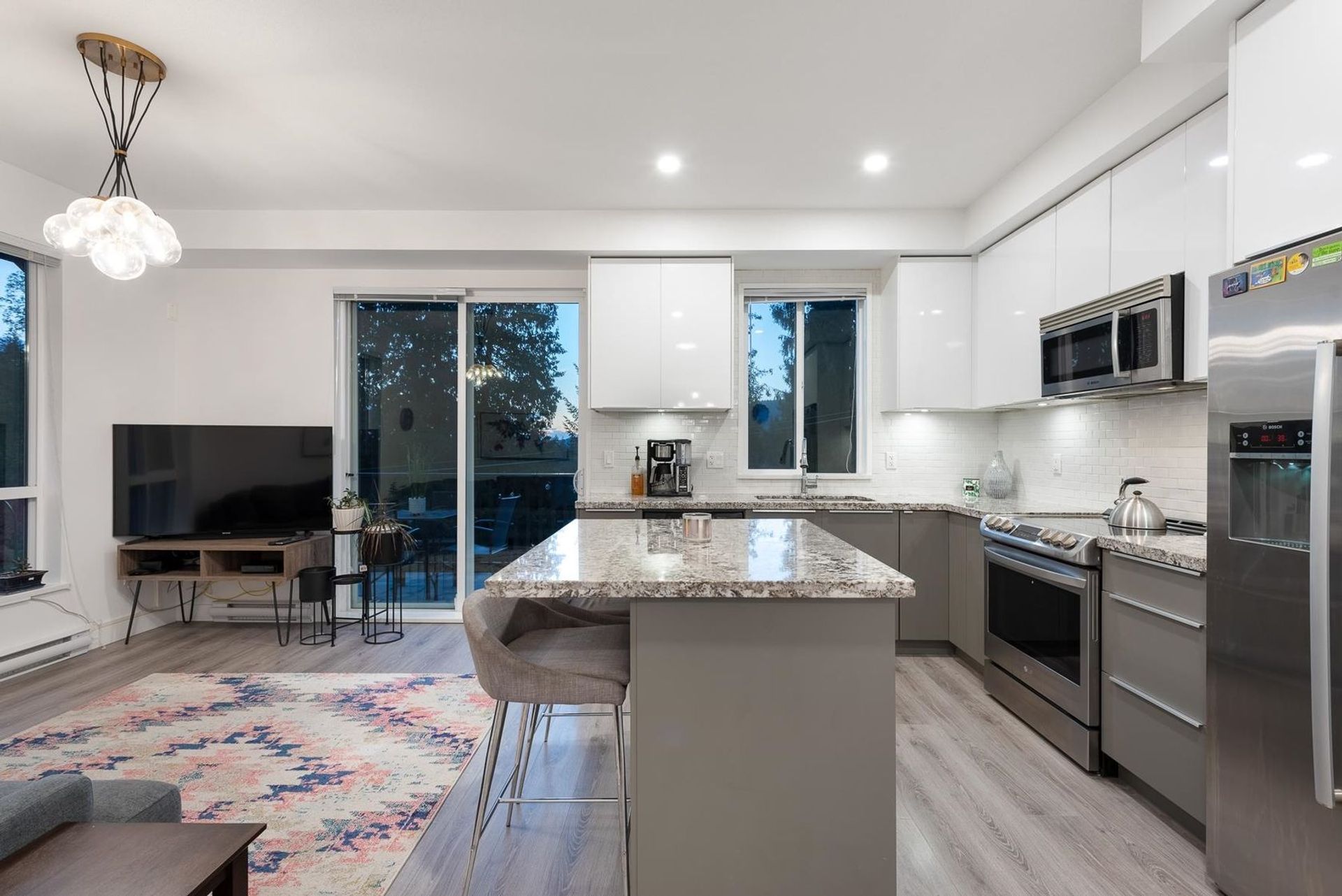 Welcome to Cedar Creek by Intergulf. Nestled in the trees alongside a GREENBELT in highly sought after Burke Mountain, this UPDATED end unit townhome has it all! Enjoy the tranquil views & sunsets in one of the 4 outdoor patio spaces. On the main floor is a large living space, dining area & fully renovated kitchen featuring S/S appliances, CUSTOM cabinets & quartz countertops. Upstairs you will find the oversized master bedroom w/ vaulted ceilings & a renovated ensuite featuring marble & heated floors along w/ 2 more generous sized bedrooms & full washroom. Downstairs is a large entertainment room with full bathroom, which could be used as a 4th bedroom! This home features premium finishes, full size double garage, is only steps away to transit & close to shopping. Book your showing today!