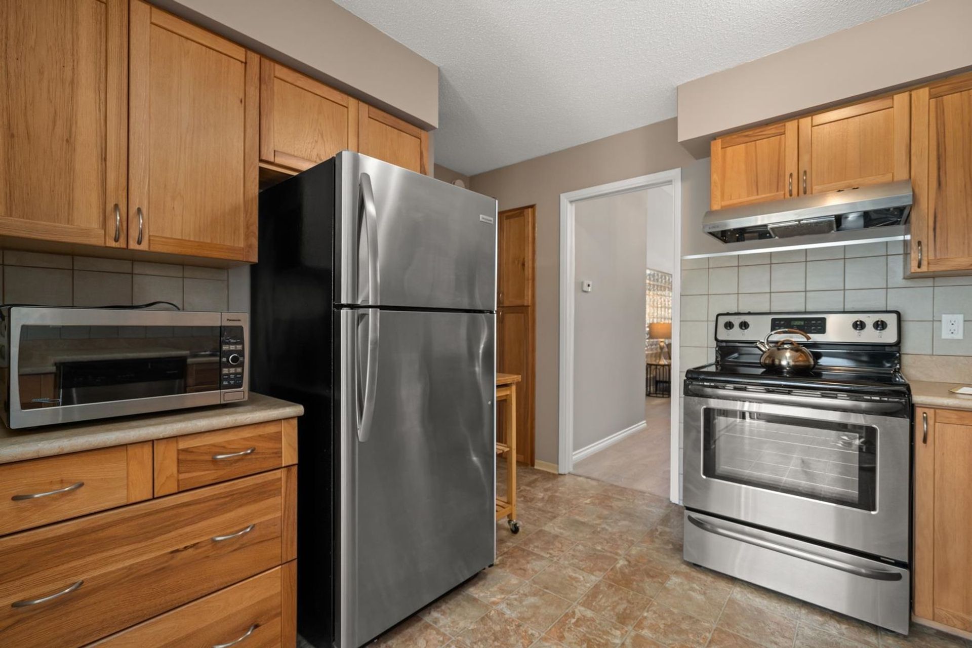 With 2,350 sq ft of living space, this updated house sized 1/2 duplex is not one to miss! From the moment you walk in, you will appreciate the updated finishes & openness. The kitchen features stainless steel appliances, quality cabinets, eating area, which leads to the generous sized balcony. The large living room has a soaring vaulted ceiling, fireplace & opens to the dining area with high ceilings. Also on the main floor is the primary bedroom with 2 piece ensuite & WIC along with 2 generous sized bedrooms & a full bath! Downstairs is a 2 bedroom self contained MORTGAGE HELPER. This home also features a large fenced yard, private driveway, newer paint, floors & carpet. This home has lots of character & is a must see!