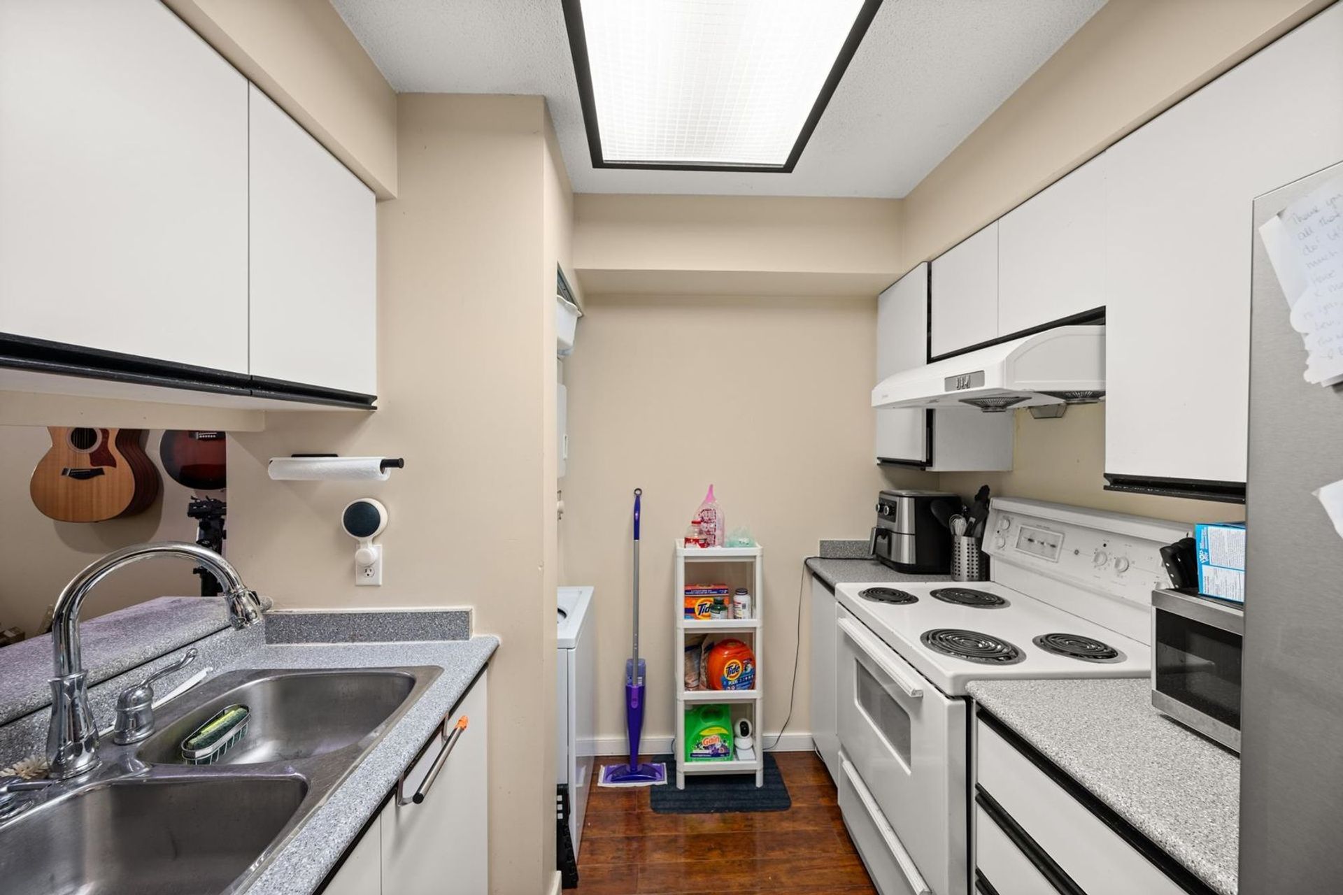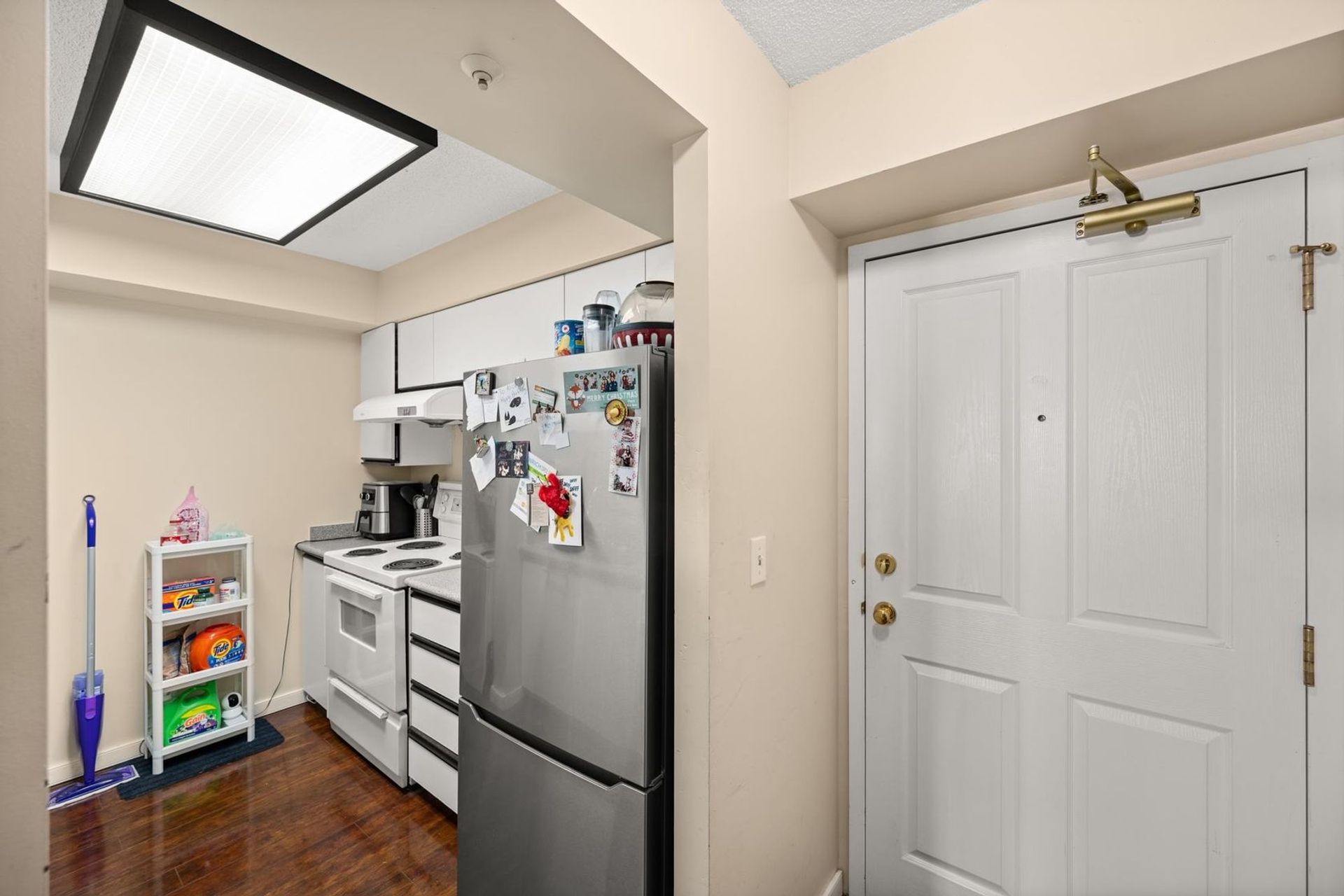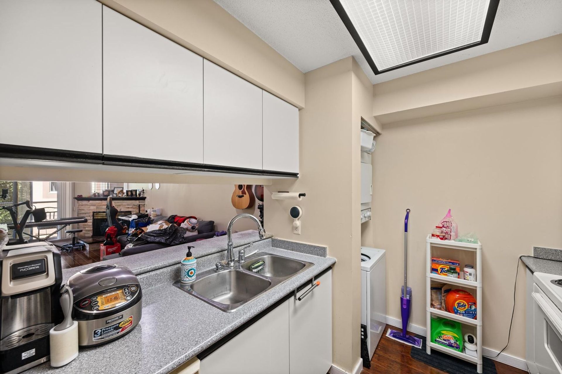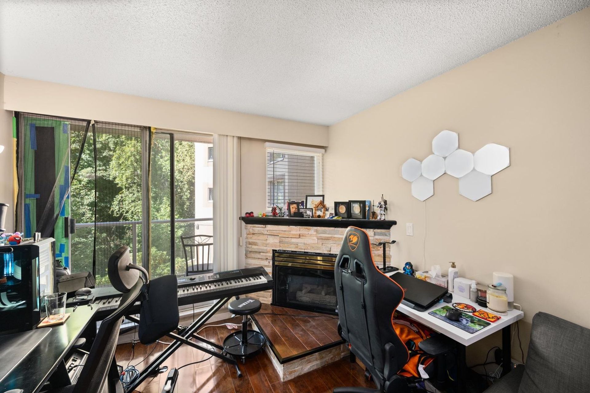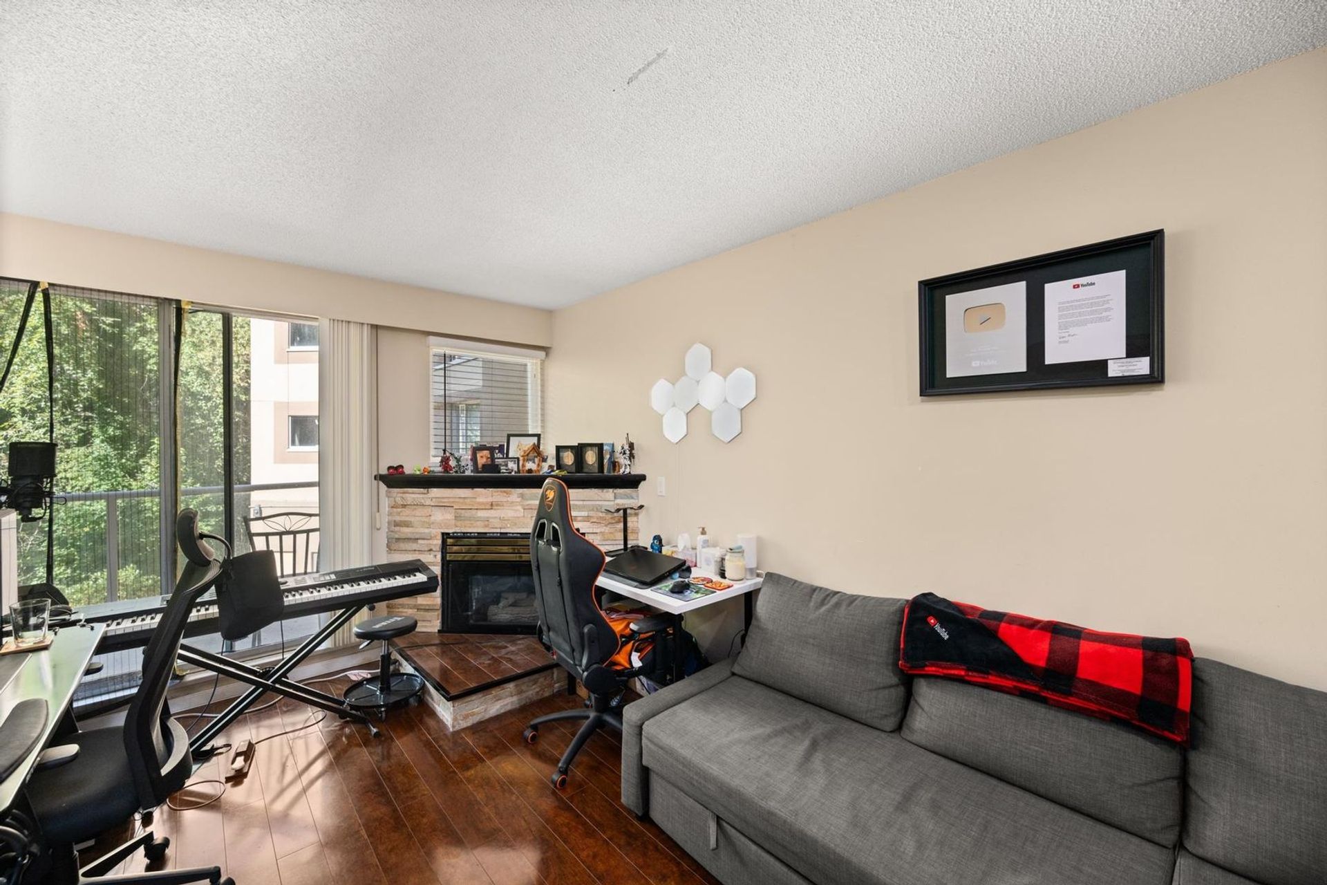 Welcome to King George Park Tower. Conveniently located in the heart of Surrey City Center, this spacious updated 657 sqft. 1 bed 1 bath home is not one to miss! Walk inside & appreciate the open concept floorplan & large kitchen open to the cozy living area featuring a GAS fireplace (gas included in strata fees), and fresh paint throughout. Off the living room is the serene private balcony, overlooking the GREENBELT. This home features a bright oversized bedroom complete w/ a walk in closet. Located steps away from the Skytrain Station, this home offers easy access to Vancouver as well as shopping, restaurants, SFU, schools, parks, recreation center & more. The well maintained building offers a gym, club house, bike room, large parking stall & a storage locker. Don't miss your opportunity to call this place home!
