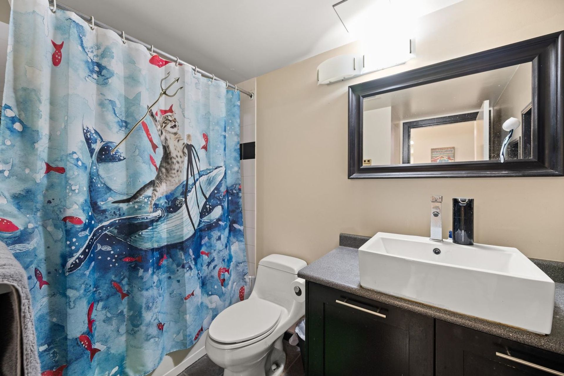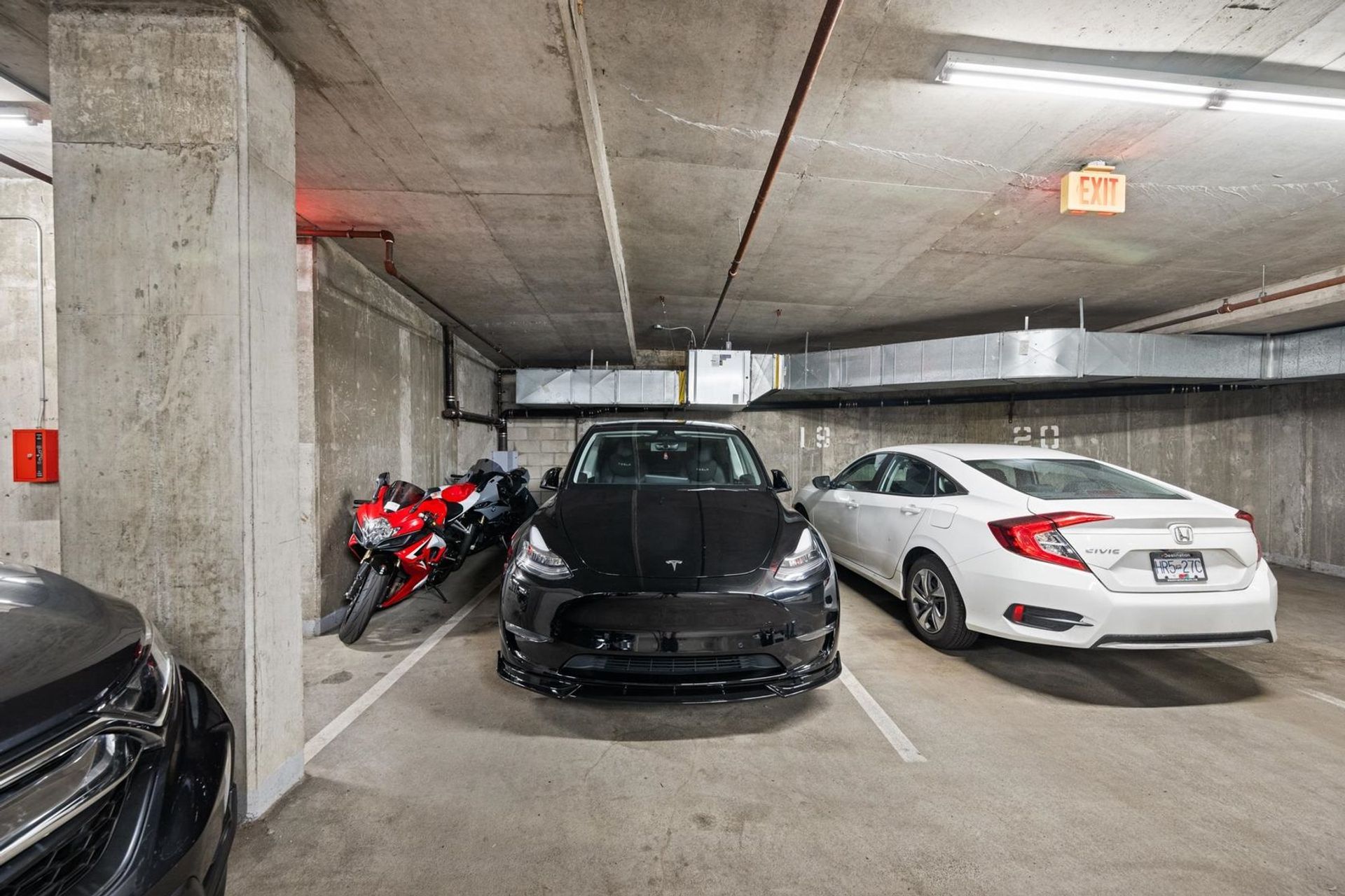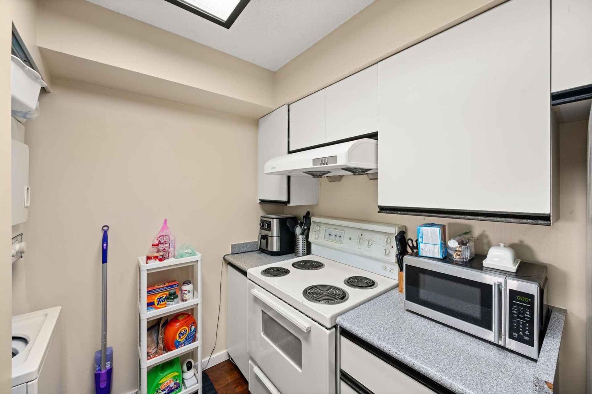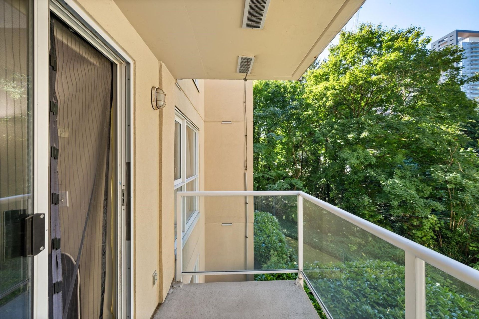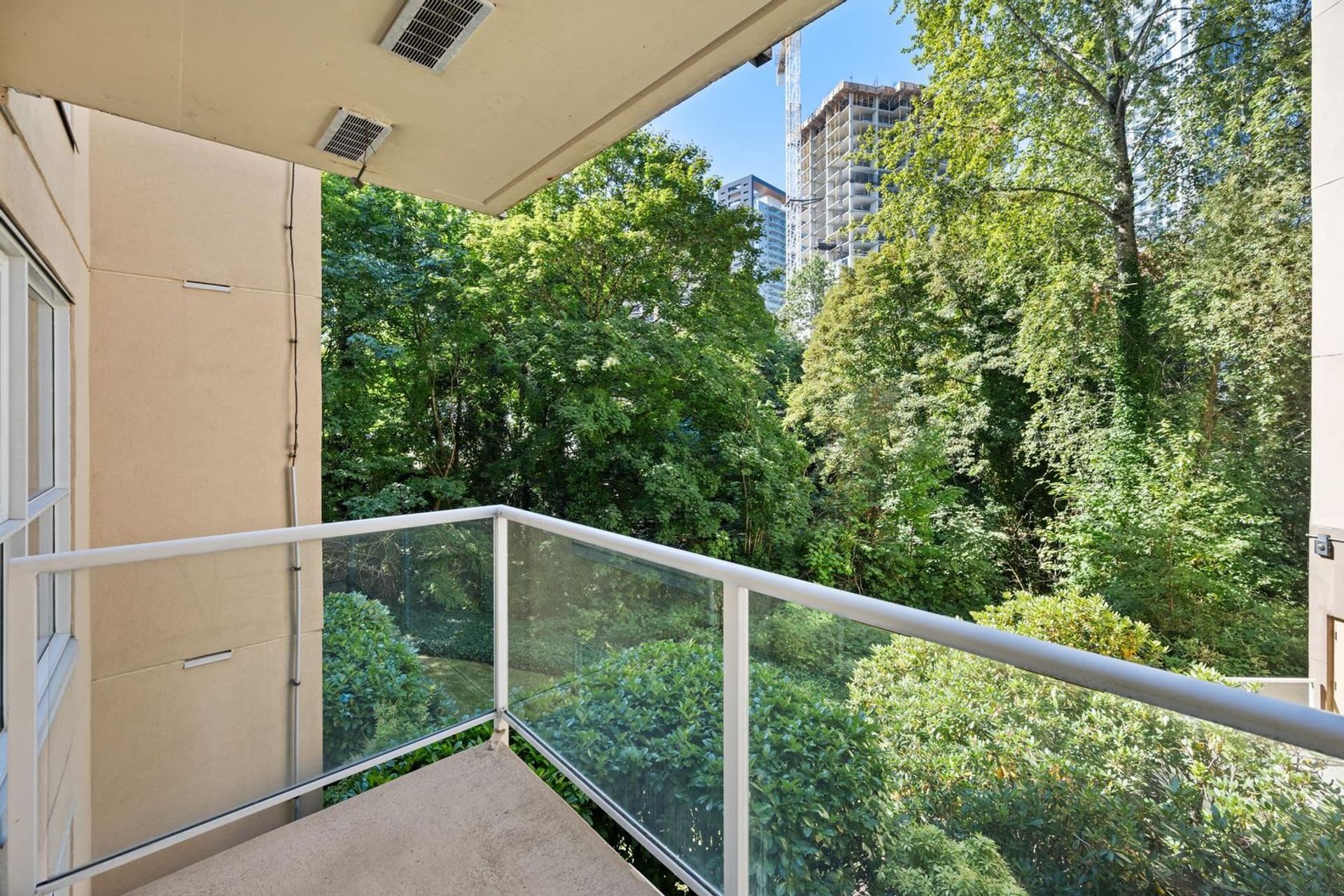 Welcome to King George Park Tower. Conveniently located in the heart of Surrey City Center, this spacious updated 657 sqft. 1 bed 1 bath home is not one to miss! Walk inside & appreciate the open concept floorplan & large kitchen open to the cozy living area featuring a GAS fireplace (gas included in strata fees), and fresh paint throughout. Off the living room is the serene private balcony, overlooking the GREENBELT. This home features a bright oversized bedroom complete w/ a walk in closet. Located steps away from the Skytrain Station, this home offers easy access to Vancouver as well as shopping, restaurants, SFU, schools, parks, recreation center & more. The well maintained building offers a gym, club house, bike room, large parking stall & a storage locker. Don't miss your opportunity to call this place home!