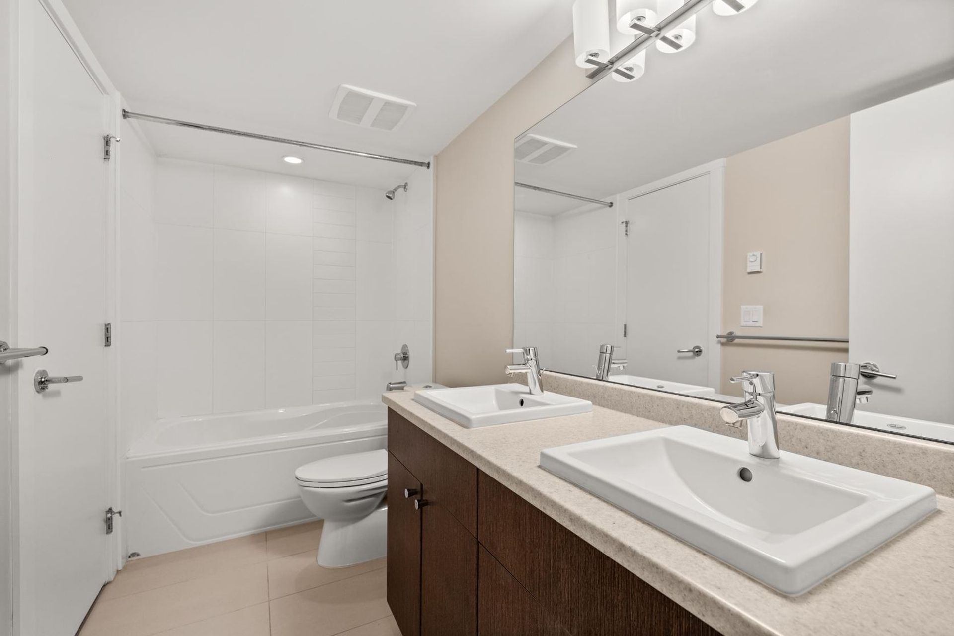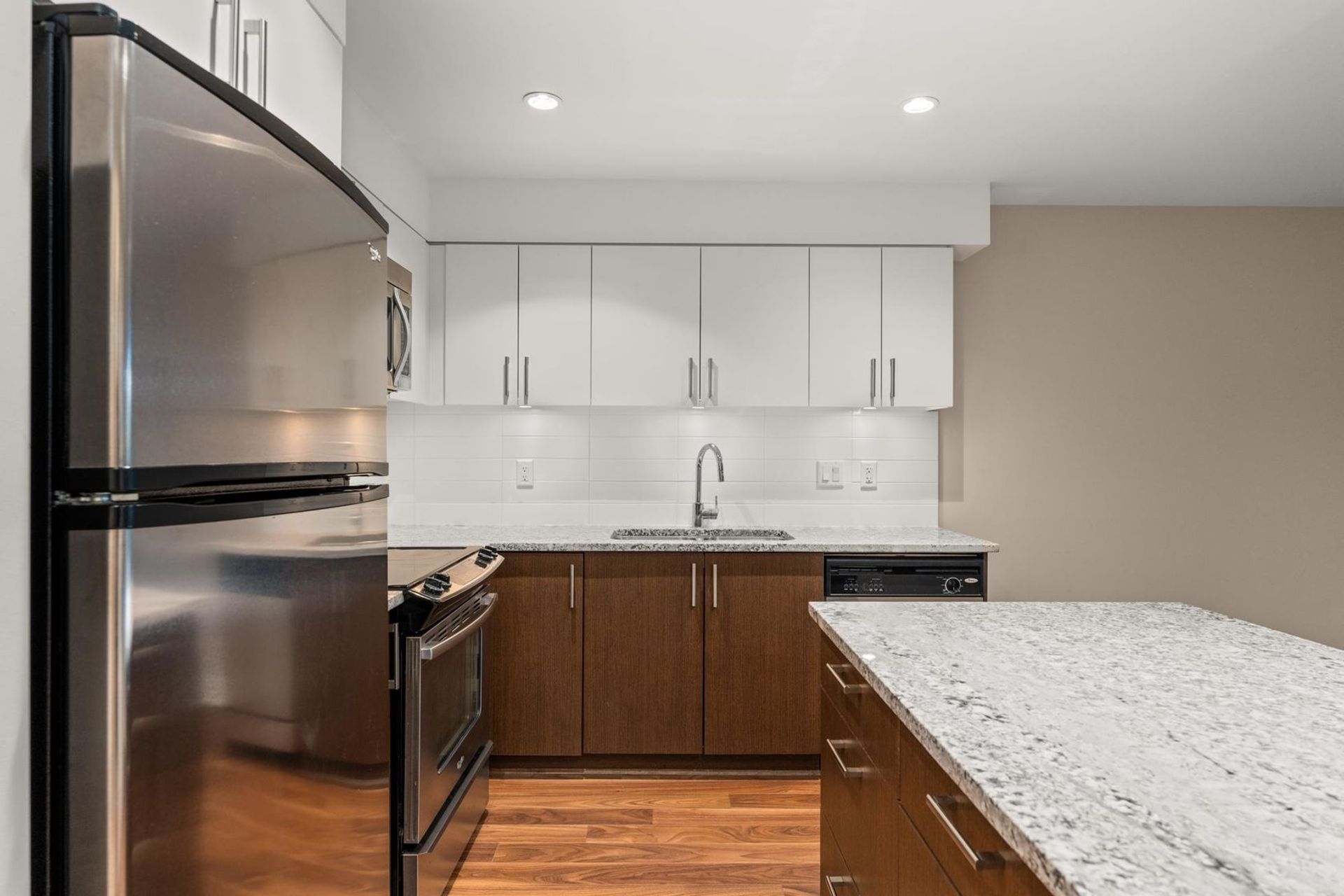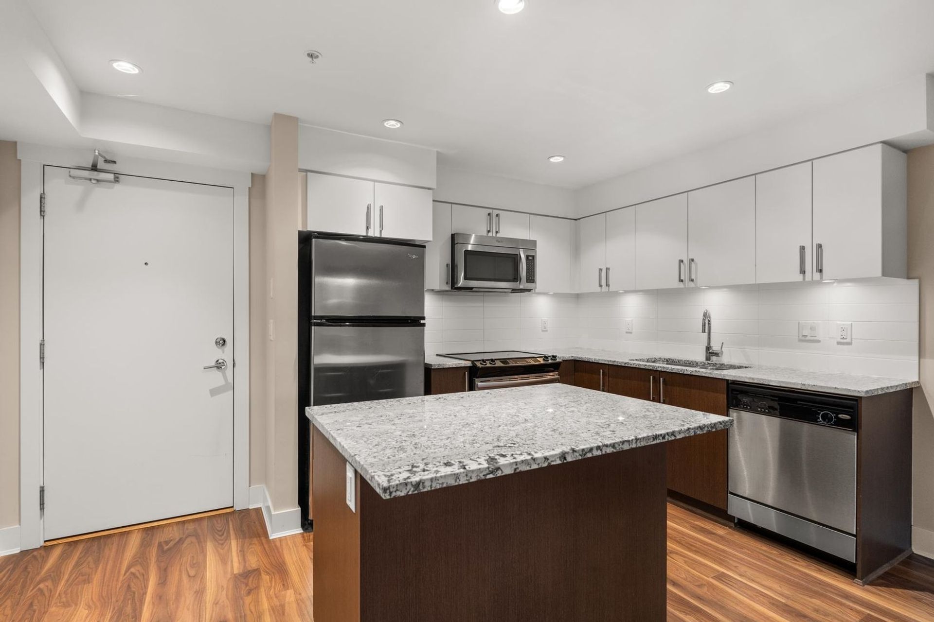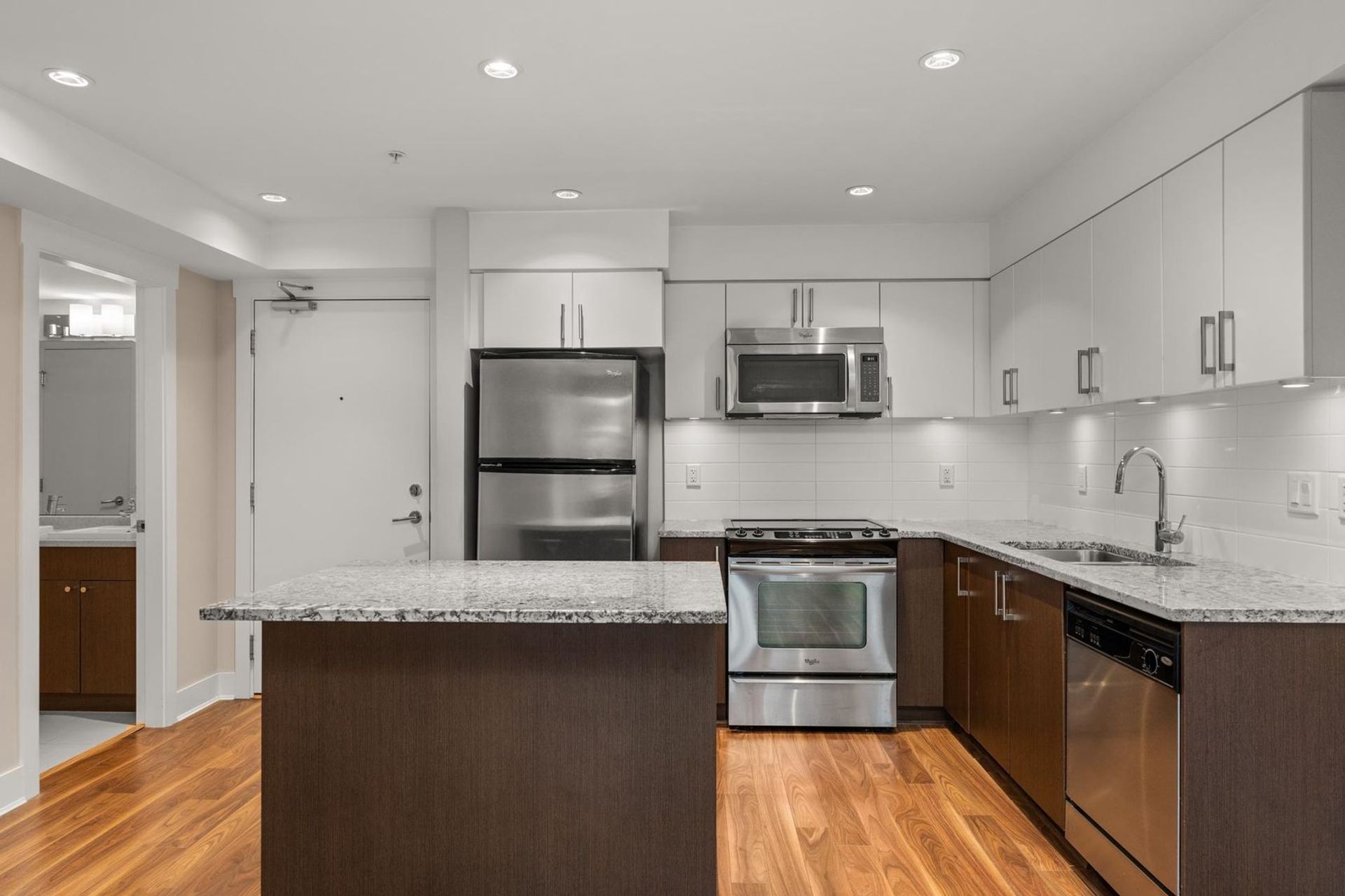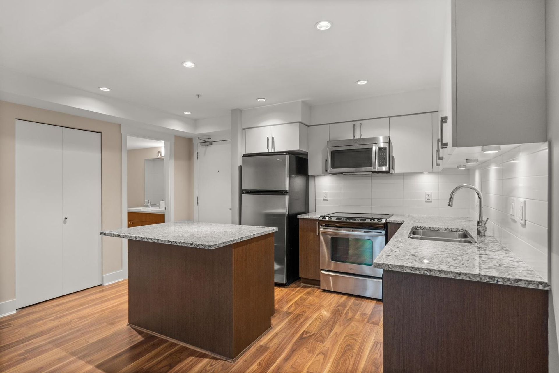 Welcome to Eight West, one of the best value 2 bedroom homes on the market in New West! This pristine 735 sqft unit offers 2 spacious bedrooms, an open layout, quality laminate floors, south facing balcony & large windows flooding the home with natural light. The kitchen features S/S appliances, an island, granite countertops & is open to the living area, creating the perfect space for entertaining! Centrally located in Glenbrook North, this home is located steps away from grocery, shopping, public transit, Canada Games Pool, Queen's Park, all levels of schools, the new soon to be completed 114,000 sqft aquatic/community center & more! This home also includes RARE 2 secure side by side parking spots & a storage locker. Don't miss your opportunity to call this place home!