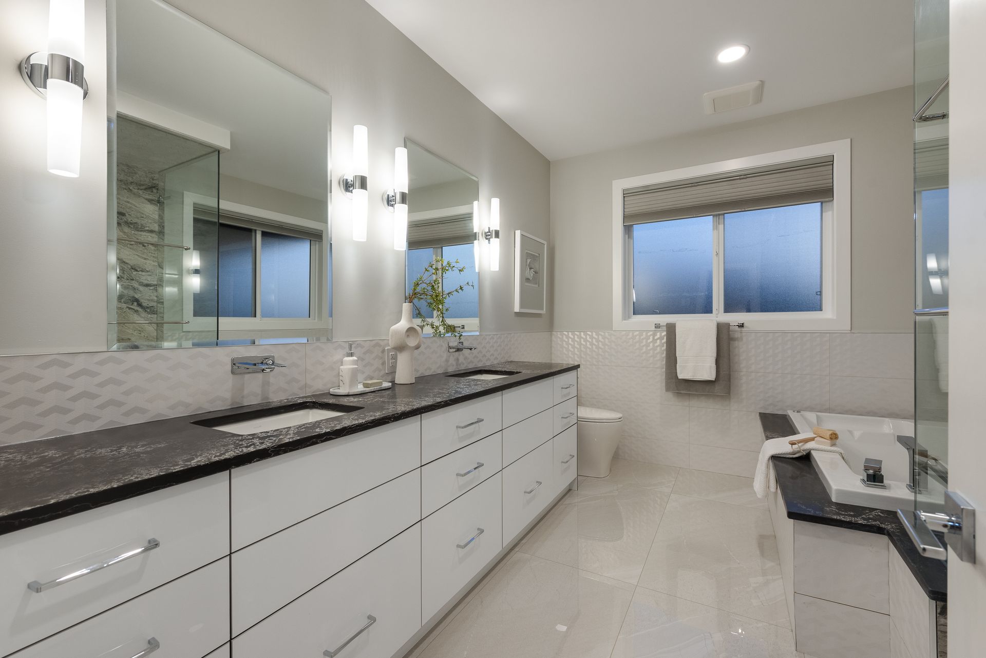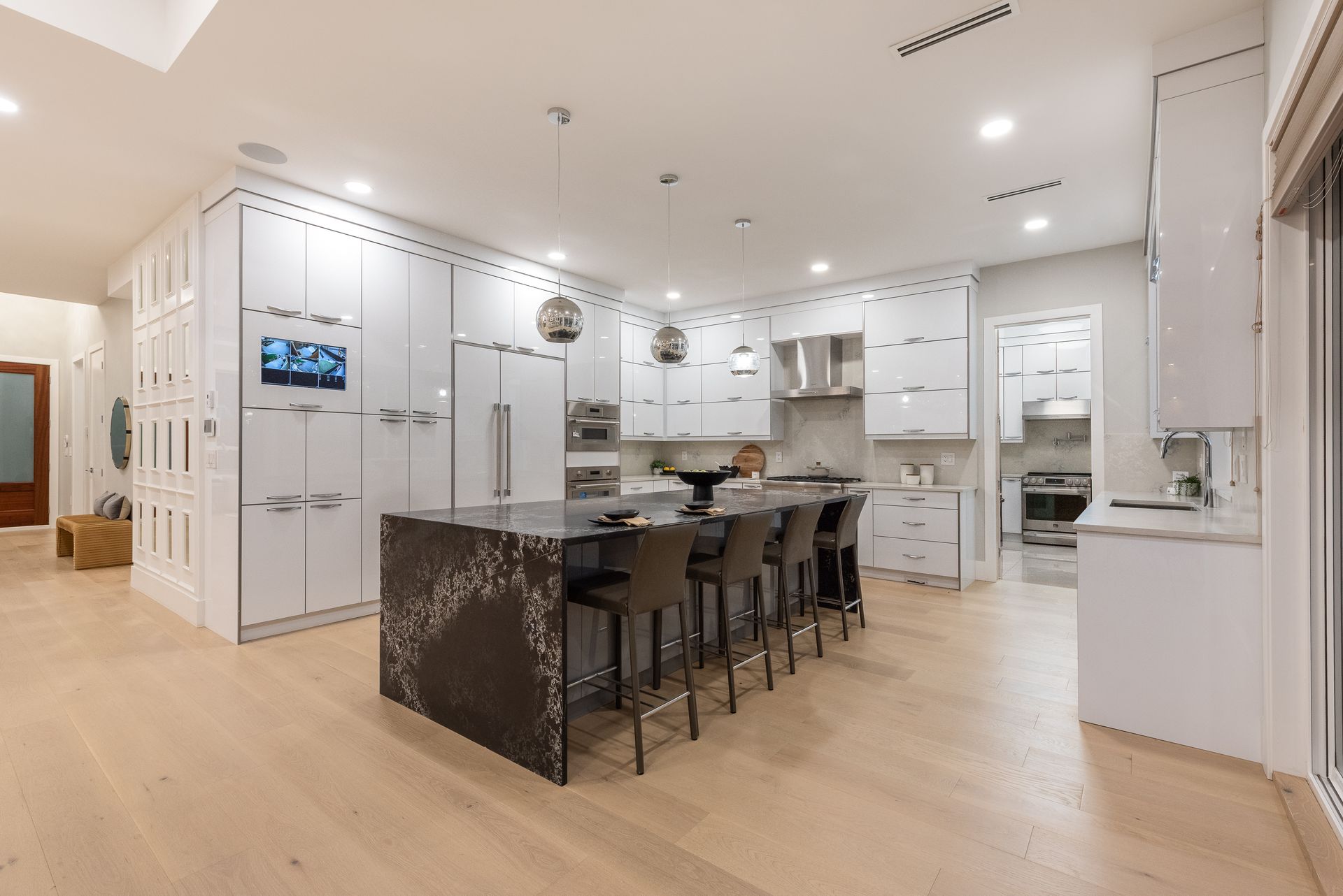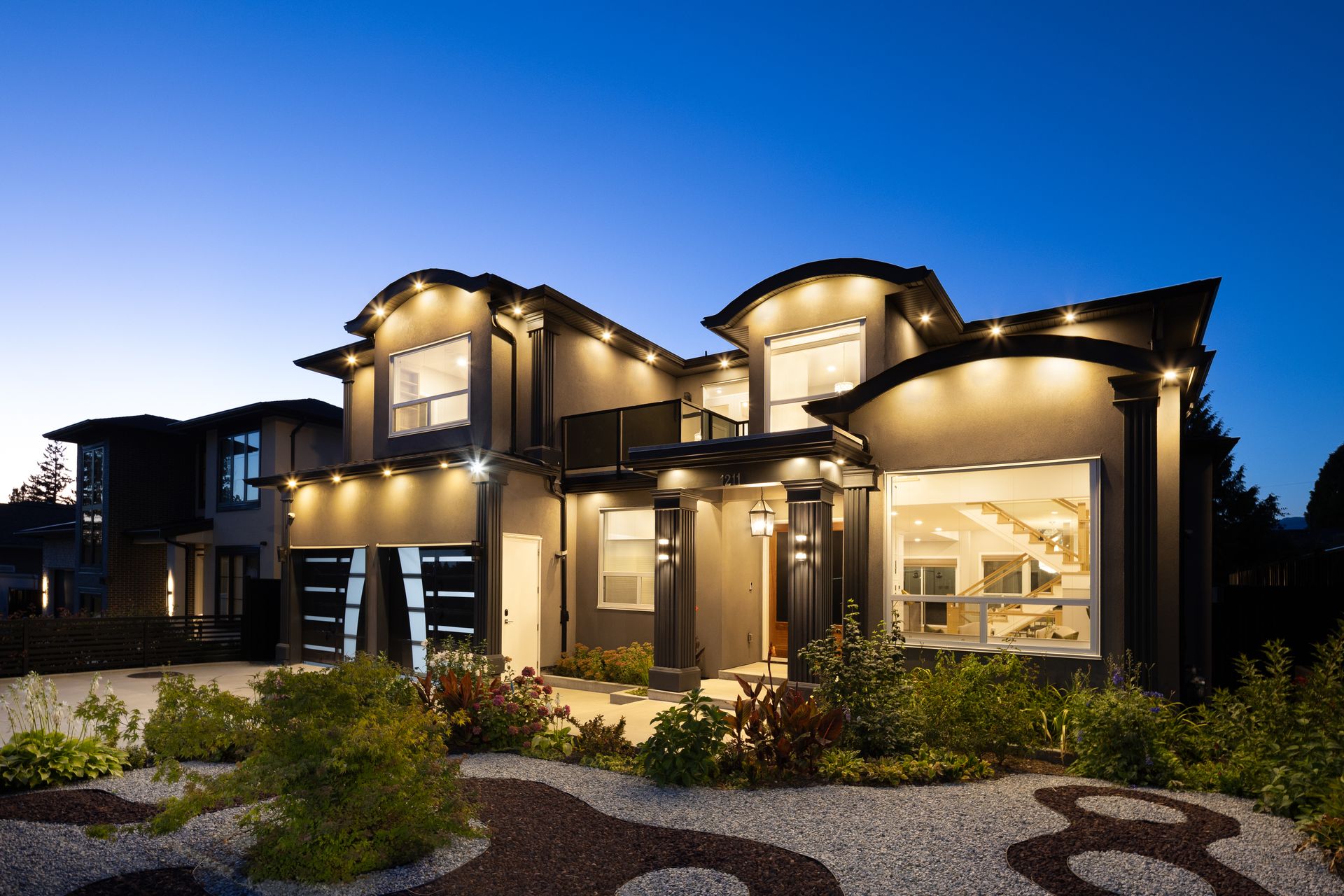 Welcome to 1211 Foster Avenue. This LIKE-NEW 8 bed/ 8 bath residence is situated on an expansive 7,744 sqft lot with lane access in prime Central Coquitlam. Inside, this 5,508 sqft home boasts a grand foyer with 20' ceilings, formal family room, office, & guest bedroom w/ ensuite. The gourmet kitchen features Thermador integrated appliances, quartz counters, wok kitchen + pantry. Designed w/ entertaining in mind, the kitchen opens up to the expansive living & dining areas and a large patio. Take the elevator upstairs to the luxurious primary bdrm w/ opulent ensuite, walk-in closet & private balcony + 3 additional bedrooms. The basement offers a 2 bed legal suite & potential 1 bed in-law accommodation. Located just steps to Como Lake, parks, Poirier Recreation Complex, grocers & transit.