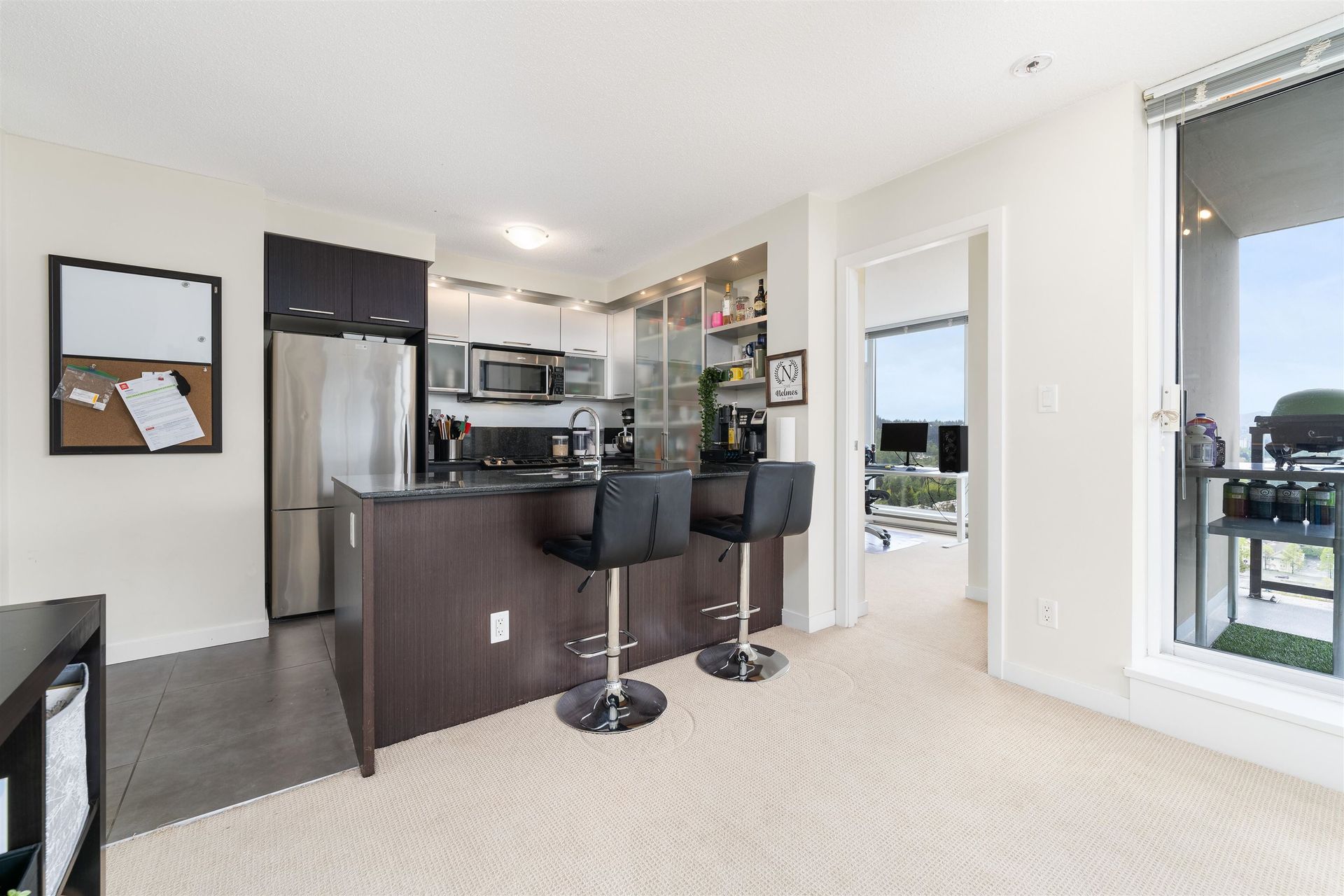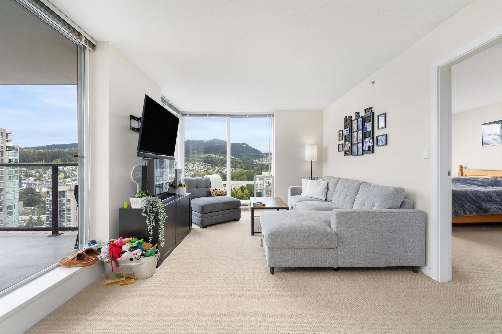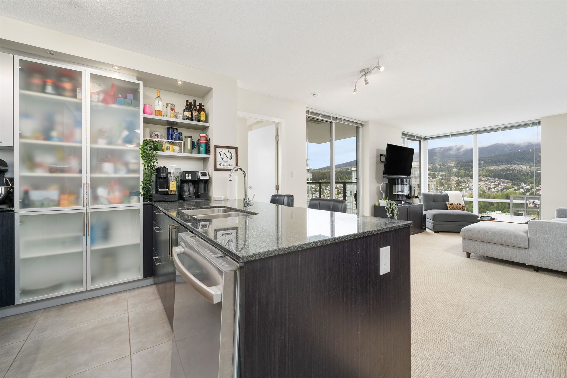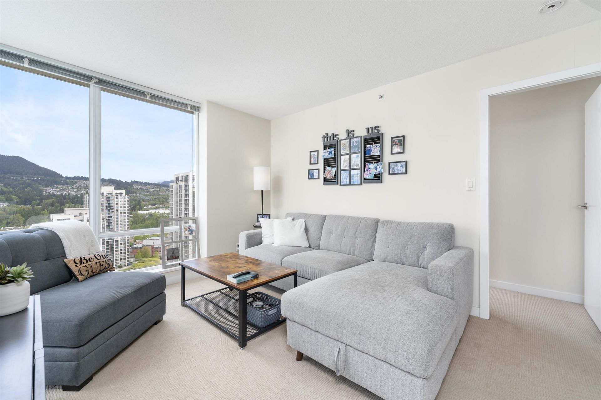 Enjoy unobstructed mountain and city views from this 2 bed + 2 bath unit at the LEVO, located in the heart of North Coquitlam. Inside, this 896 sqft CORNER UNIT offers an ideal split bedroom layout, gourmet kitchen with S/S appliances and granite countertops, and a spacious living/dining area. The primary suite features double closets + ensuite with soaker tub. The second bedroom is generous in size & boasts incredible views. Relax or entertain on the covered balcony year-round. Amenities at the LEVO include a 30,000 sqft rooftop garden oasis and a large party room. Incredible location, enjoy walking distance to Skytrain, Coquitlam Centre Mall, Douglas College, Lafarge Lake and endless dining options! This unit includes 1 underground parking stall + 1 storage locker.