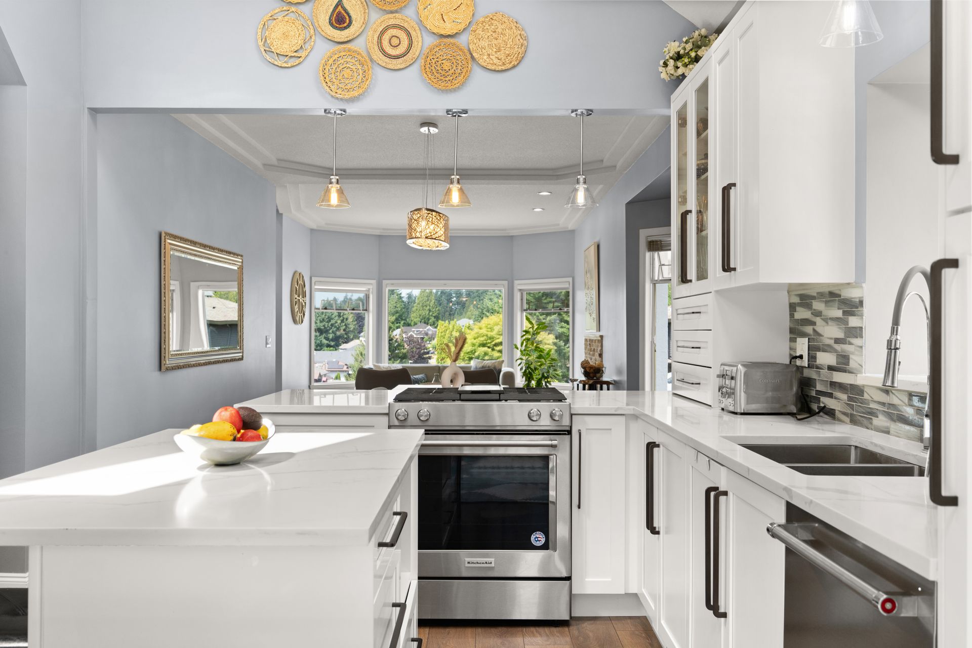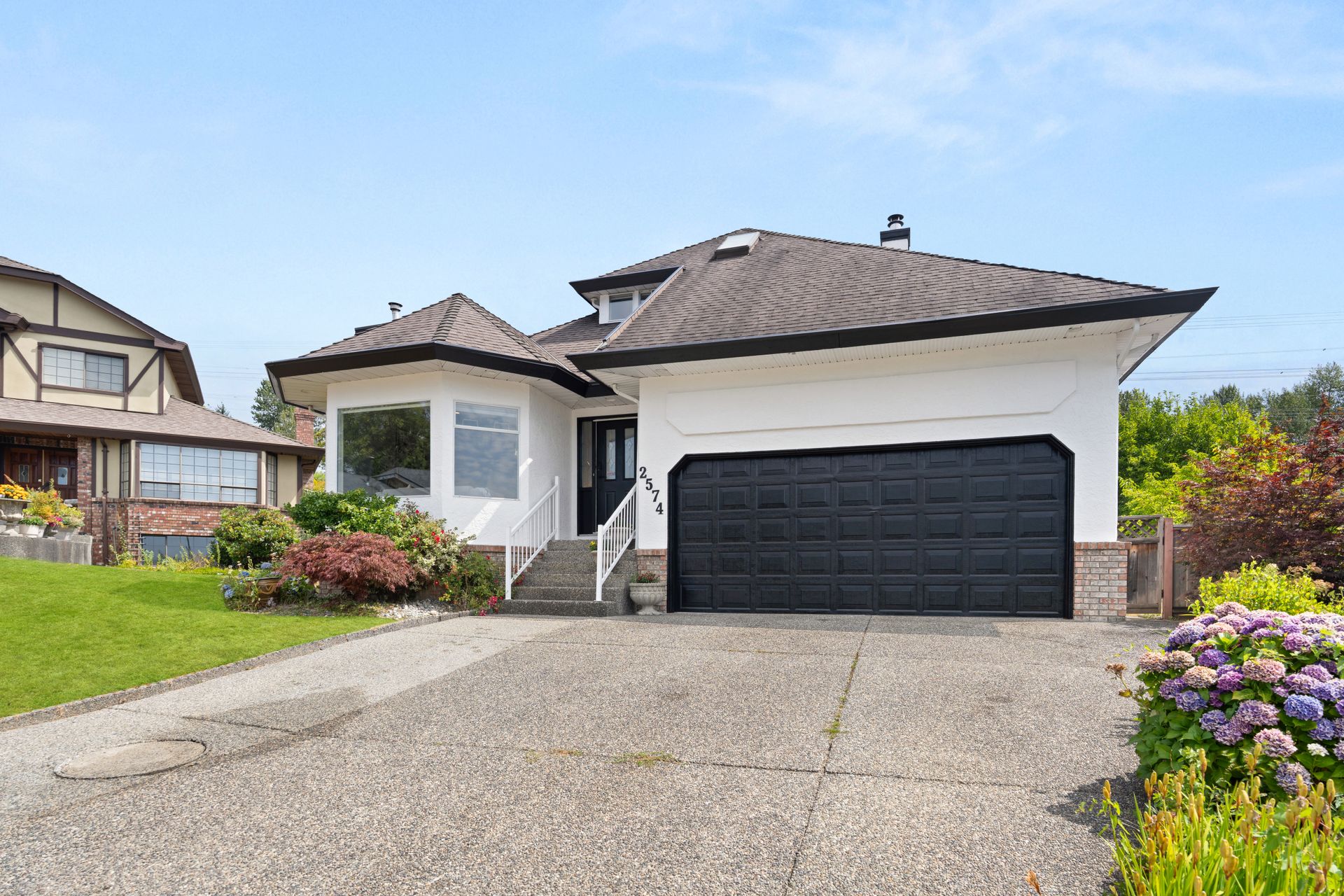 Welcome to 2574 Fuchsia Place. Located in Coquitlam's Summitt View neighbourhood this 3,496 sqft home is situated on a 7,250 sqft lot offering incredible SW views & private access to the Coquitlam Crunch! Inside, this 4 bed, 4 bath home has been updated over the years including fresh exterior paint, flooring, updated bathrooms & a finished basement. The main floor offers a bright open concept plan with a formal living/dining area which leads to your renovated kitchen w/ S/S appliances + island w/ breakfast bar. The primary suite features a large walk in closet & ensuite + 1 additional bdrm on the main. Downstairs offers a rec room, spacious bdrm w/ ensuite + 1 bed nanny/in-law accommodation. The backyard is an entertainers dream w/ a covered deck, hot tub & room for kids to play!