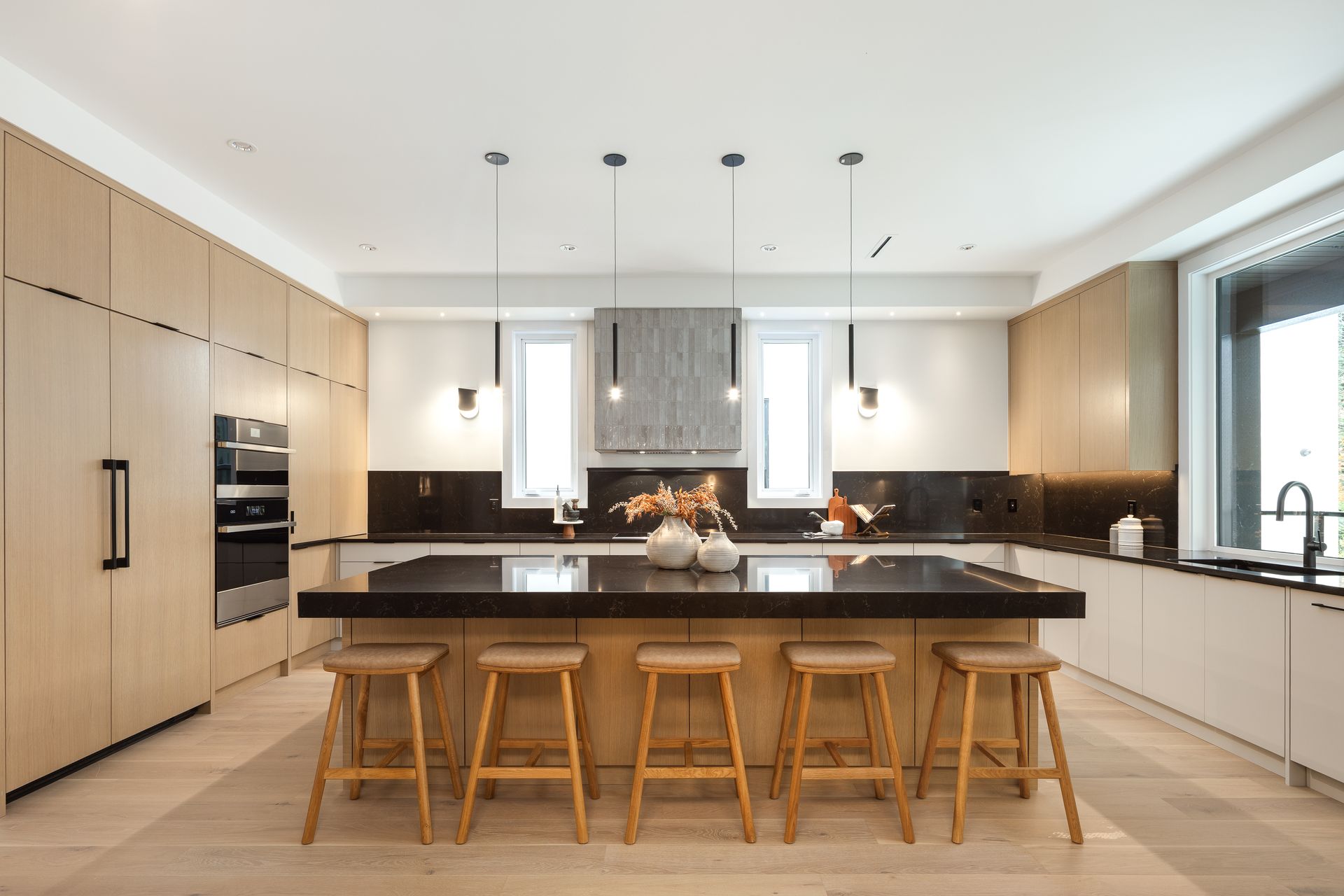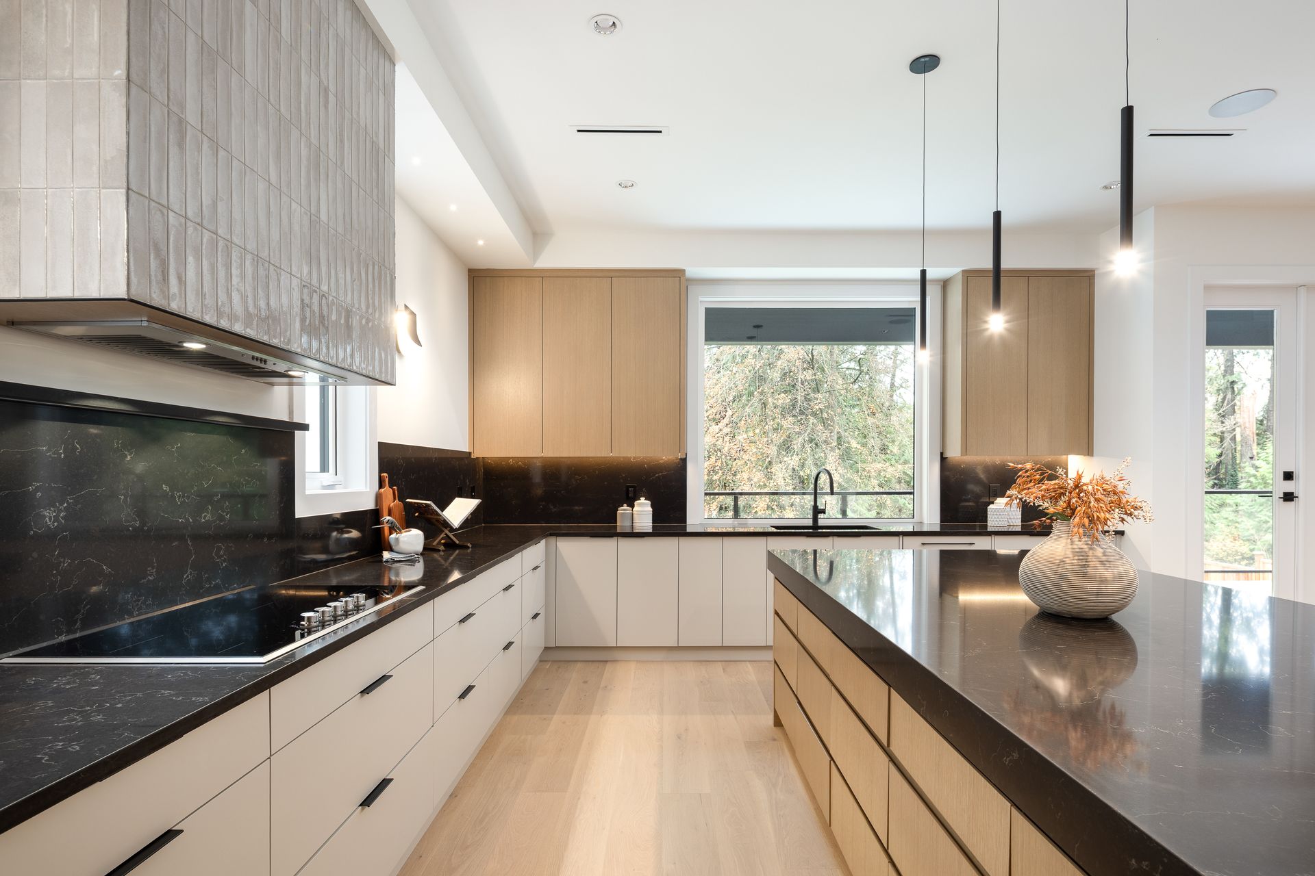 AMBROSIA II by Quantus Homes- where contemporary design meets luxury living. This stunning Westcoast home offers 5,086 sqft of thoughtfully designed living space on an expansive lot backing onto serene greenspace. Inside, this 7 bed, 7.5 bath home showcases premium designer finishes including radiant in-floor heating, AC & a host of luxury features. Enjoy entertaining in your chefs kitchen w/ premium appliances, large waterfall island & wok kitchen w/ gas range. The dining area opens up to the spacious living room w/ sliding doors that lead to your 406 sqft balcony. Upstairs, the Primary retreat offers a spa-like ensuite & 2 WICLO + 3 additional bedrooms & a loft- ideal for a home office. The basement includes a large rec room & 2 bed legal suite. BONUS: Main floor bedroom + ensuite, great for guests!