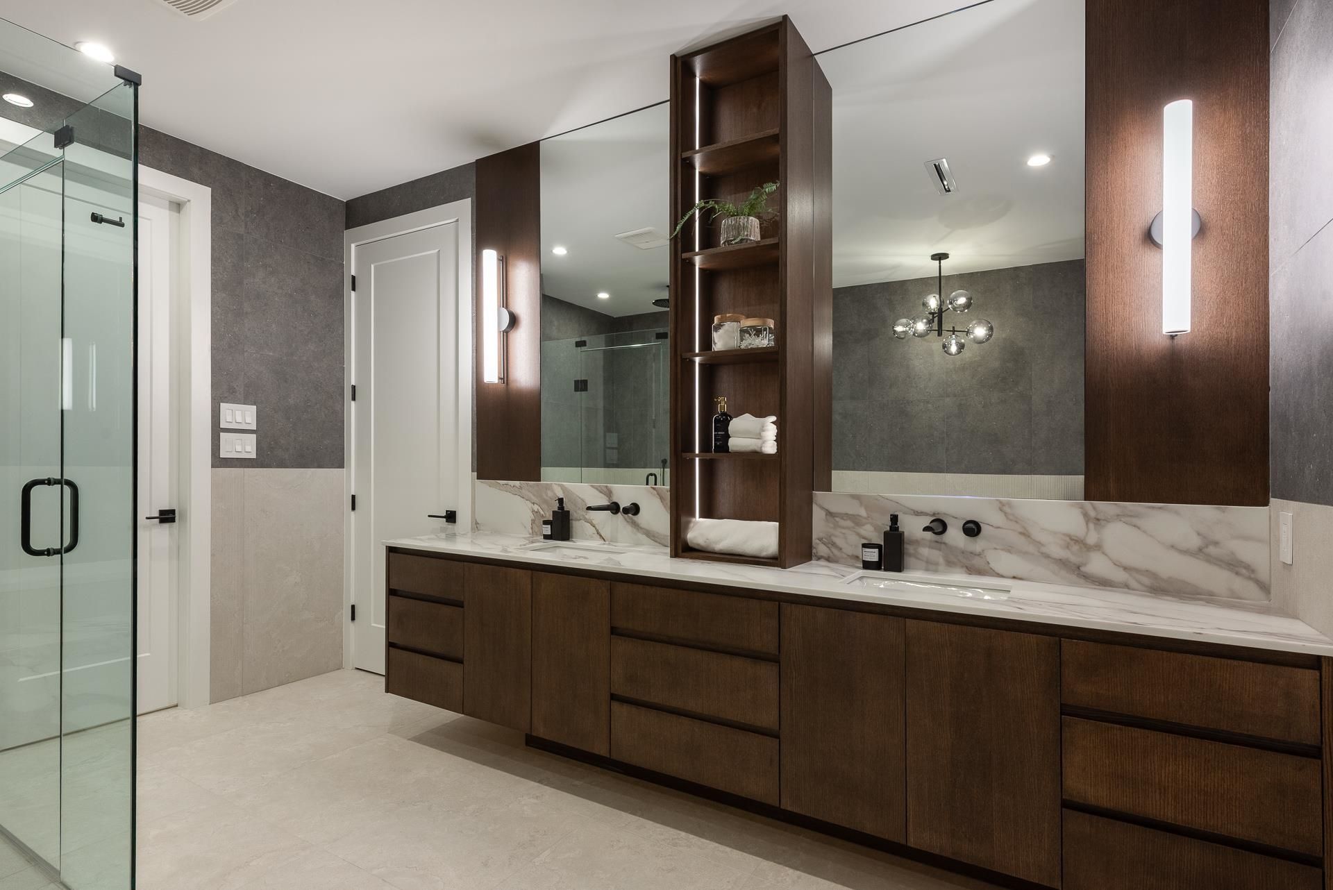 PALLISER MODERN by Quantus Homes. Where thoughtful design meets contemporary living. Located in Central Coquitlam, this 7 bed/ 6.5 bath home offers 5,550 sqft of luxury living on an expansive lot w/ LANE ACCESS. The main floor boasts an open layout with over height ceilings, formal living room w/ views of the courtyard, office & spare bedroom w/ ensuite. The chefs kitchen offers premium appliances, custom millwork & wok kitchen. This home is an entertainers dream w/ an expansive great room w/ access to your outdoor space. Upstairs is the opulent primary bedroom w/ walk in closet + spa-like ensuite & 3 additional bdrms. The bsmt offers a large rec room, gym, sauna & 2 bed legal suite. Other features include radiant heat, AC and engineered hardwood flooring. OPEN HOUSE APR 18 & 19 2-4pm.