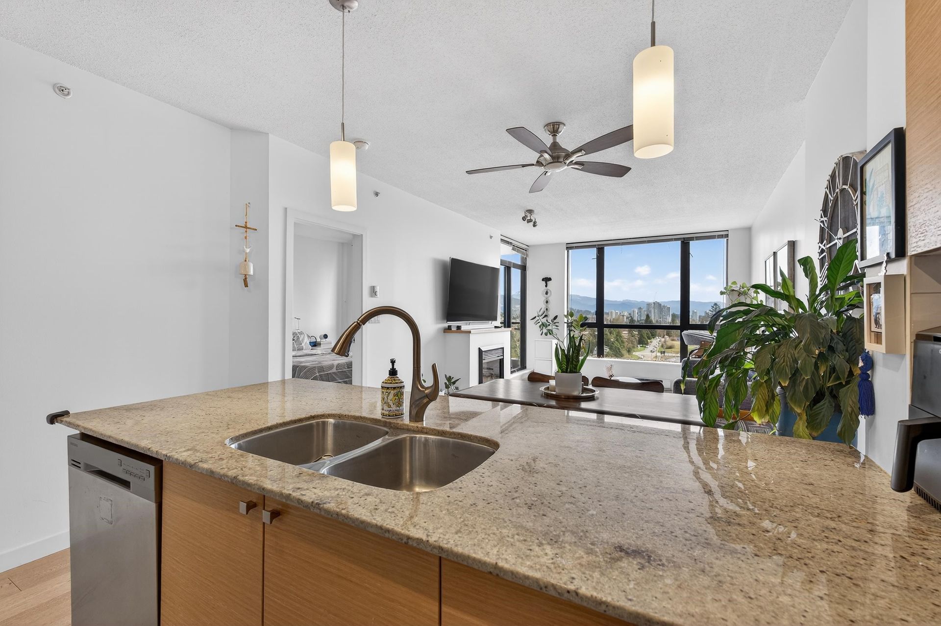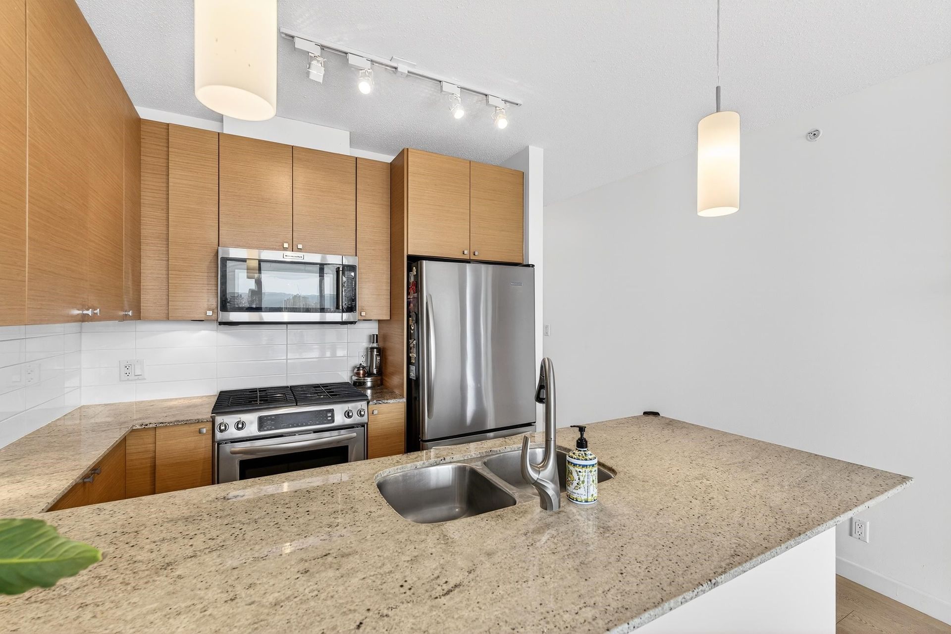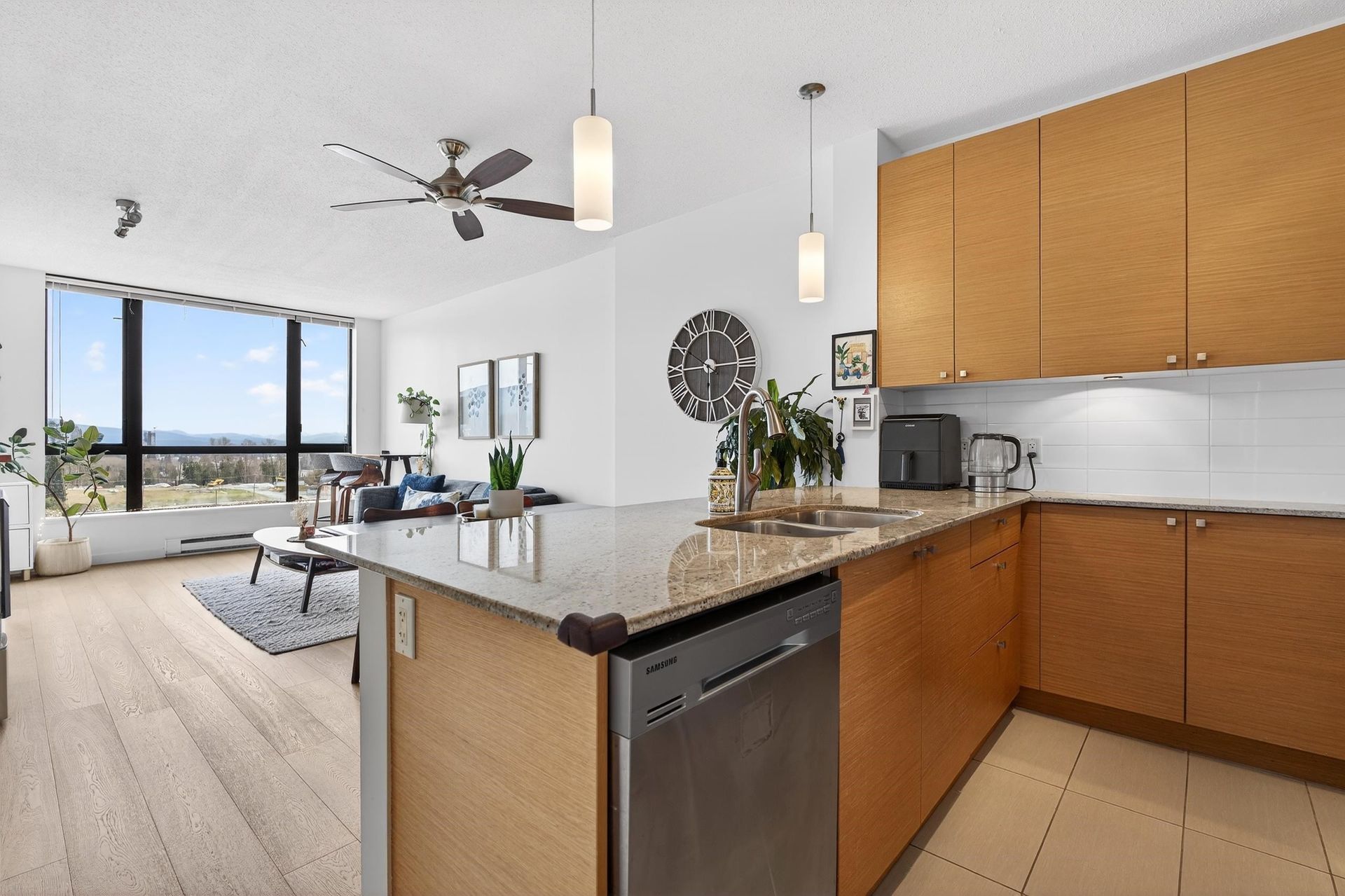 Welcome to Aria 1 in sought-after Suter Brook Village! This bright and spacious 1 bed, 1 bath condo features floor-to-ceiling windows, updated floors, fresh paint, and an open living/dining area - perfect for entertaining. Relax on your balcony and take in the unobstructed views of the mountains. The kitchen offers granite countertops, stainless steel appliances, gas range, built-in microwave, and breakfast bar. Enjoy resort-style amenities including an indoor pool, hot tub, sauna, steam room, fully equipped gym, squash court, yoga studio, theatre, and party room. Unbeatable location just steps to shops, restaurants, Thrifty Foods, Starbucks, JJ Bean, SkyTrain, Rocky Point Park, and Brewers Row. Book your private showing today!